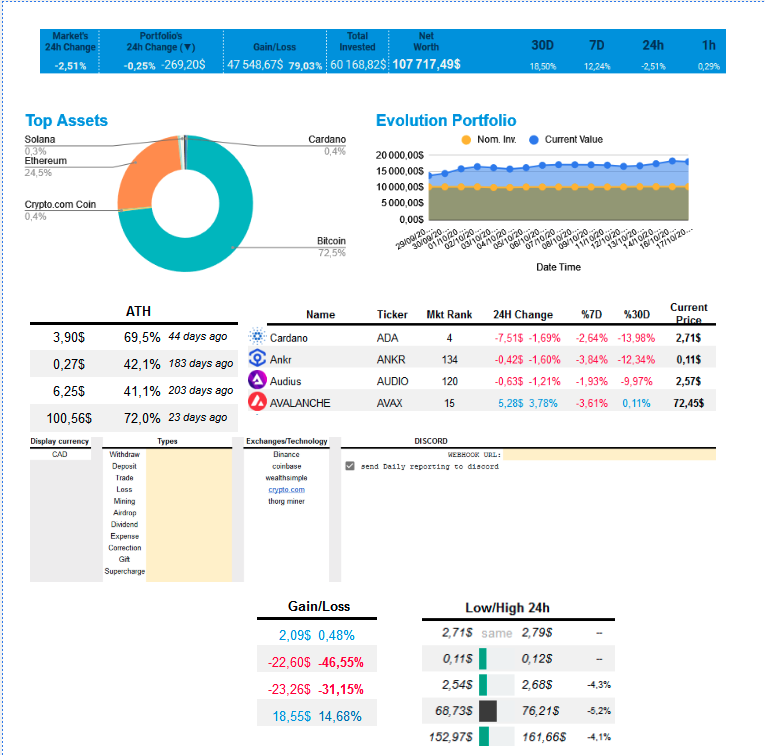 - Profit Tracking: See unrealized gains, ROI %, and 24h changes at a glance. Conditional formatting highlights winners/losers.